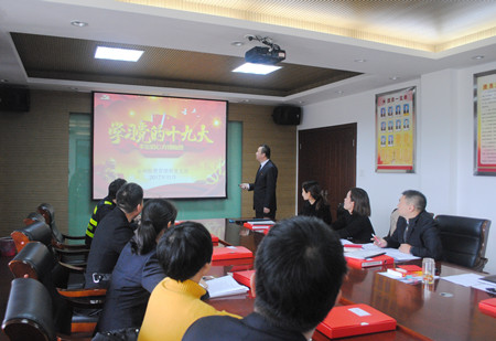 圖為學(xué)習(xí)十九大報(bào)告內(nèi)容現(xiàn)場(chǎng) 黨支部書記王小勇制作了學(xué)習(xí)十九大報(bào)告內(nèi)容的PPT,設(shè)框架、劃重點(diǎn),以圖文并茂的形式,將學(xué)習(xí)十九大精神與日常工作緊密聯(lián)系起來(lái),為更好地開展工作打下堅(jiān)實(shí)的思想基礎(chǔ)。