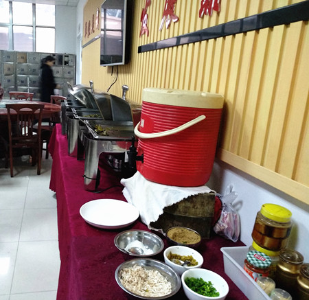 圖為餐廳一角早餐自助區(qū)