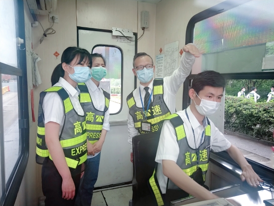 圖為陳軍帶領(lǐng)新員工在崗?fù)づ嘤?xùn) 新員工的到來(lái),為該所注入了新鮮的血液,增添了青春活力。為了讓新員工能夠快速“入鄉(xiāng)隨俗”,盡快適應(yīng)收費(fèi)站工作環(huán)境,順利完成角色轉(zhuǎn)換,當(dāng)日他們就跟著資深班長(zhǎng)陳軍學(xué)習(xí)相關(guān)業(yè)務(wù)知識(shí)。