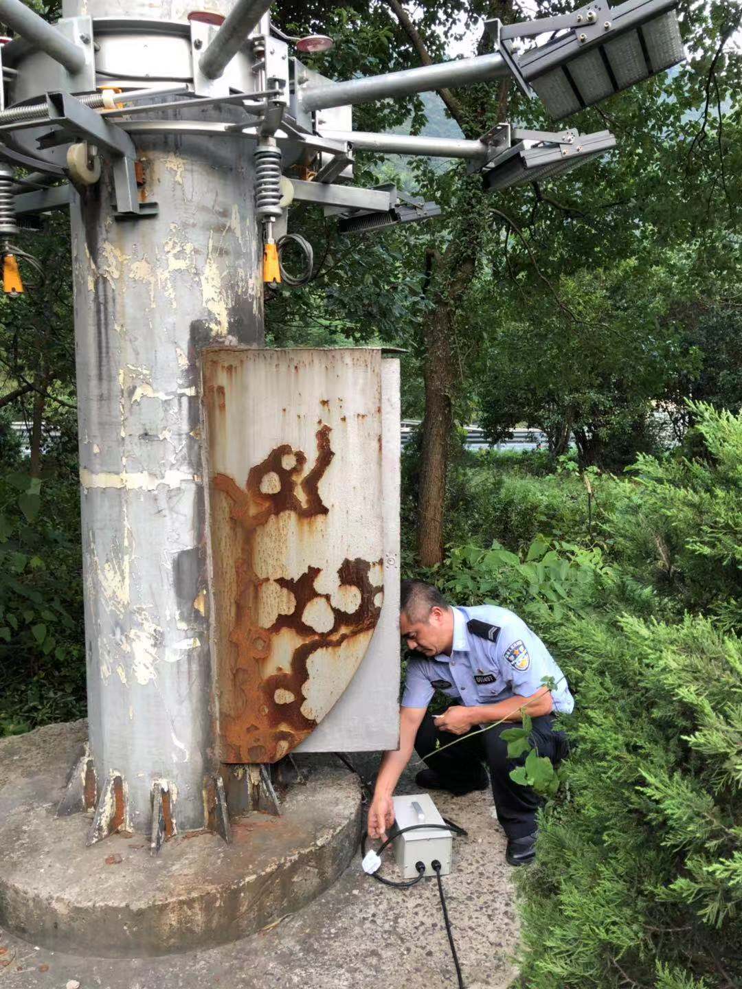 圖為臺(tái)風(fēng)過后隧道所人員檢查南廣場高桿燈
