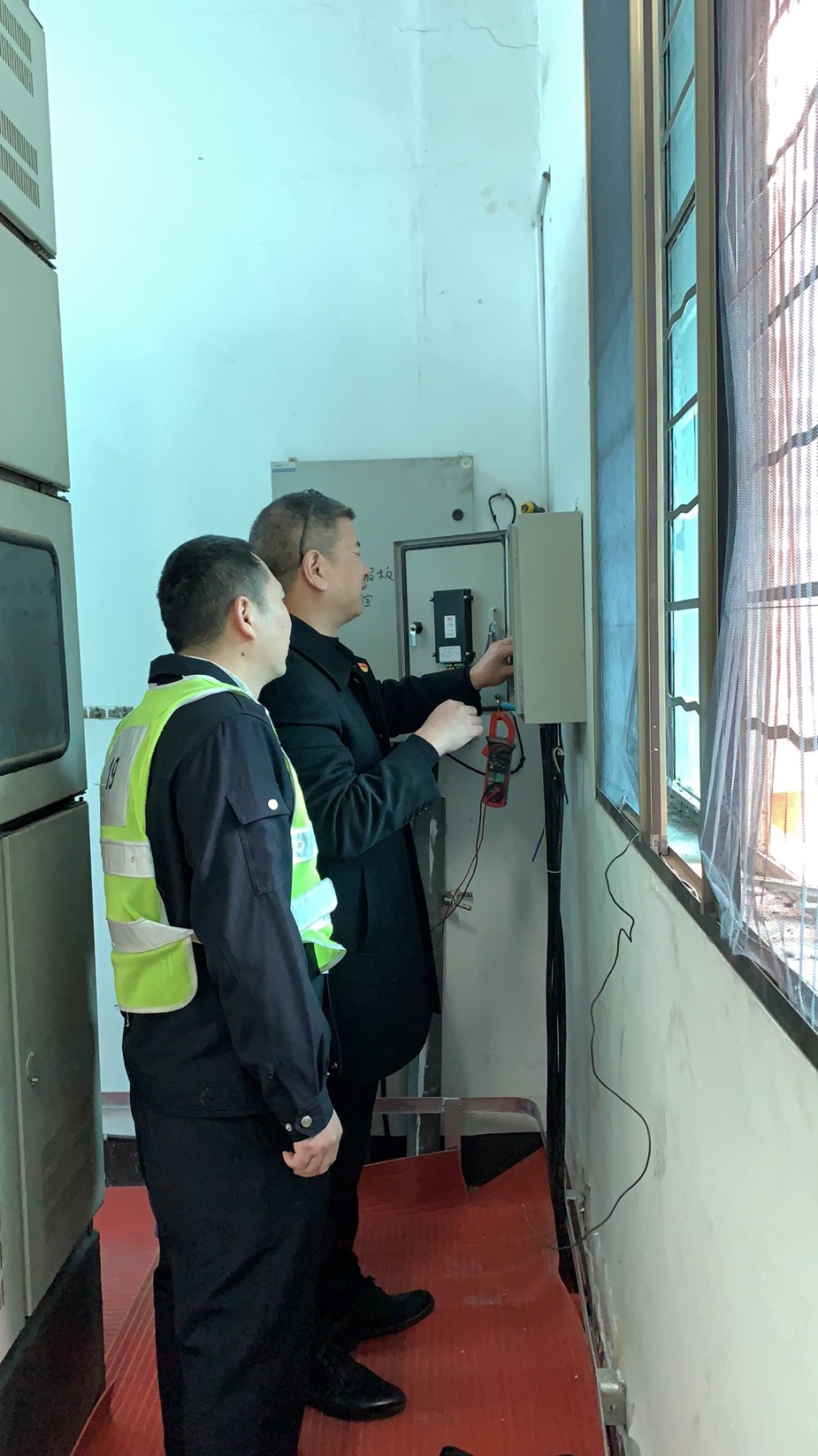 圖為設備設施檢查 當天,該所開始春運專項安全生產大檢查,要求春運期間要加強安全管理和責任,強化監督檢查,抓好安全預防。10日,該所又做了一次全面的安全檢查和隱患排查,對隧道兩邊的高邊坡、豎井、高位水池、配電房、隧道內外的各個消防設施等進行重點檢查,及時處理發現的問題,并做好相應檢修工作。12日,對隧道南廣場的高桿燈進行改造。14日,管理所進行了全面的衛生大打除,操場、辦公室、食堂、寢室、衛生間的各個角落,逐一進行清理,干凈整潔迎接新年。