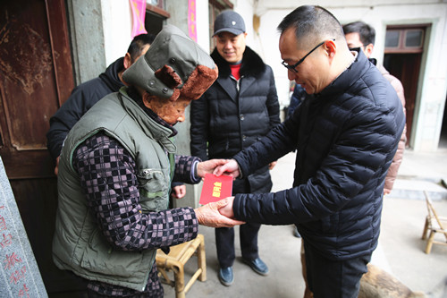 圖為集團(tuán)副總經(jīng)理羅小將慰問村里困難群眾