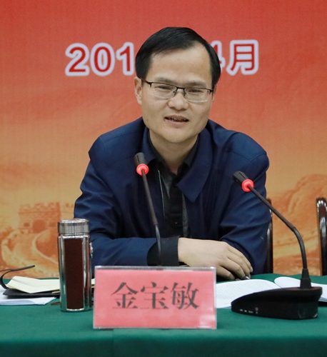 圖為市交投集團(tuán)黨委副書記、副董事長、總經(jīng)理金寶敏出席會議并發(fā)表重要講話