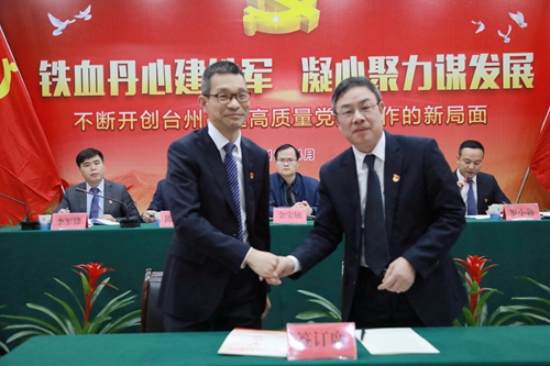 圖為集團(tuán)領(lǐng)導(dǎo)陳文波與各支部書記簽訂責(zé)任書后握手