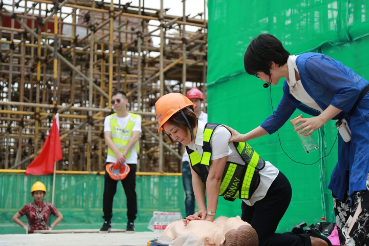 圖為心肺復蘇急救演練 隨后,臺州職業技術學院副教授李美芬到場為大家開展心肺復蘇急救知識培訓。李美芬在現場結合模型詳細為大家講解心肺復蘇急救時的注意事項、操作方法、步驟流程等,并作了專業的示范。現場人員踴躍上臺實踐學習,李美芬一一在旁邊作技術指導,強化了大家的學習效果。 整個演練過程有條不紊,集團各部門協作配合有力、扎實有序,現場人員反應迅速,現場指揮和演練人員配合默契,全方位展現了臺州高速集團應急搶險能力和各部門嚴謹細致的工作作風。本次演練為“安全生產月”活動的一部分,臺州高速集團將以此為契機,深化安全教育培訓,狠抓安全措施落實,確保公司安全基礎不斷穩固。