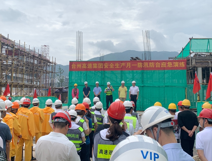 臺州高速集團開展“安全生產月”防汛防臺應急演練 6月10日上午,臺州高速集團在黃巖雅林項目工地開展“安全生產月”防汛防臺應急演練。各所、中心、子公司、辦公室、工程養護部、征費管理部相關人員,安保部全體人員參加活動。