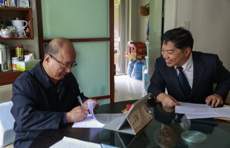11月14日上午,集團總經理助理項同富繼續上門服務,為離退休老干部胡宣義夫婦辦理股權轉讓手續。