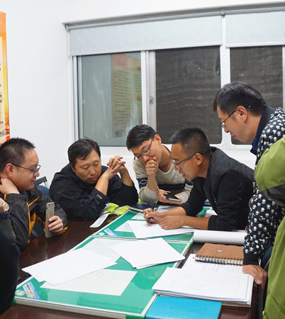 圖為深夜參加施工討論會(huì)