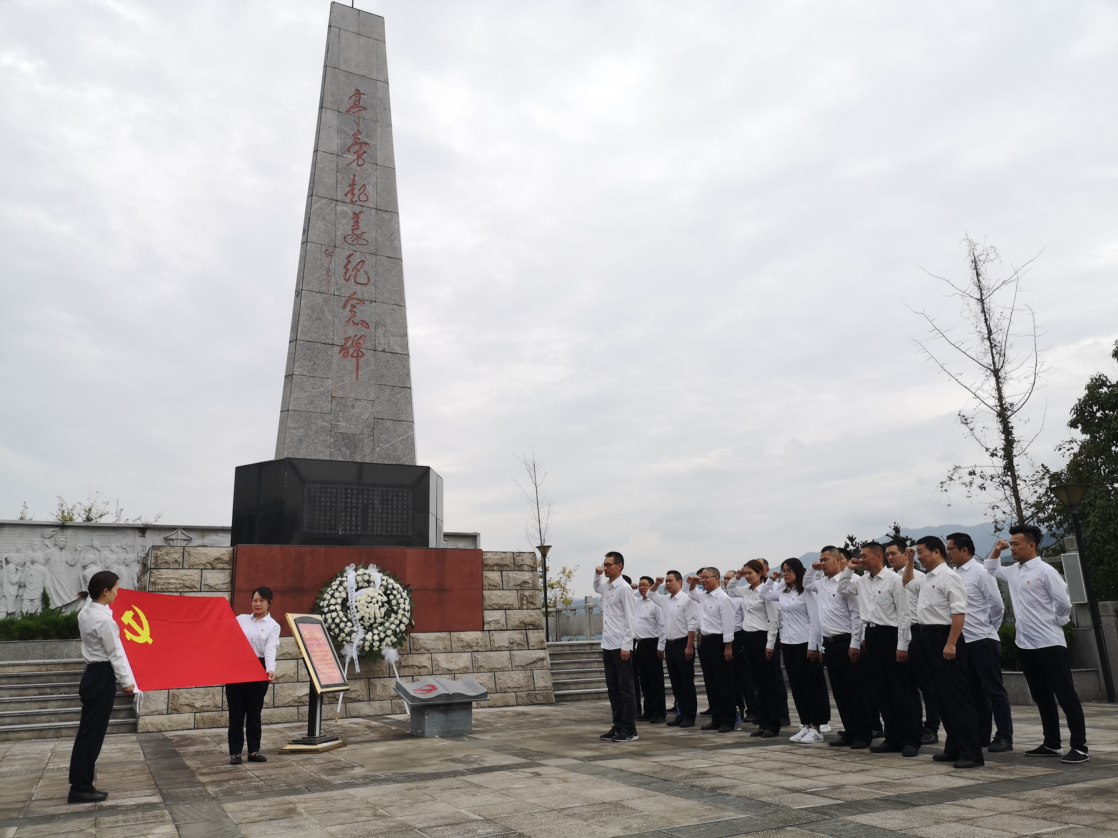(圖為紀念碑黨員合影) 亭旁起義打響了浙東武裝奪取政權的第一槍,建立了浙江第一個蘇維埃政權,被譽為“浙江紅旗第一飄”。 黨員同志們沿著先烈們的足跡,接受著紅色精神的洗禮。在亭旁起義紀念碑下,同志們重溫入黨誓詞;在紀念館,聆聽亭旁起義的歷史;在城隍廟,感受紅色區域的家國情懷……黨員們紛紛表示,一定會銘記歷史、繼承傳統。